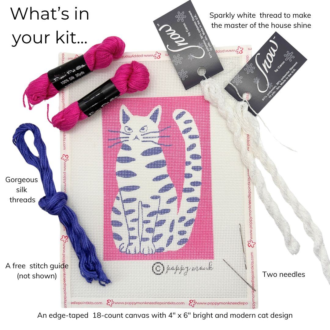 Take your stitching up a notch! These kits go beyond the classic Tent stitch and come with optional guides for decorative needlepoint stitches such as Nobuko, French knots, Double Woven, and more. Great for intermediate stitchers or even beginners who are ready to expand their skills.