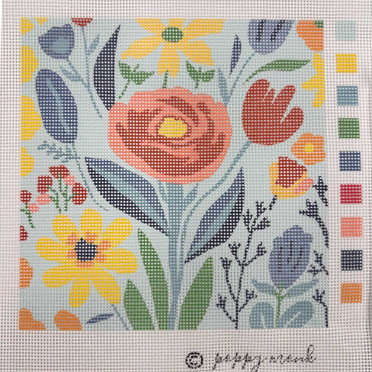 Bring the beauty of a sun-drenched meadow into your home with this vibrant 8" x 8" Victorian cross stitch design, featuring an exquisite array of colorful wildflowers.