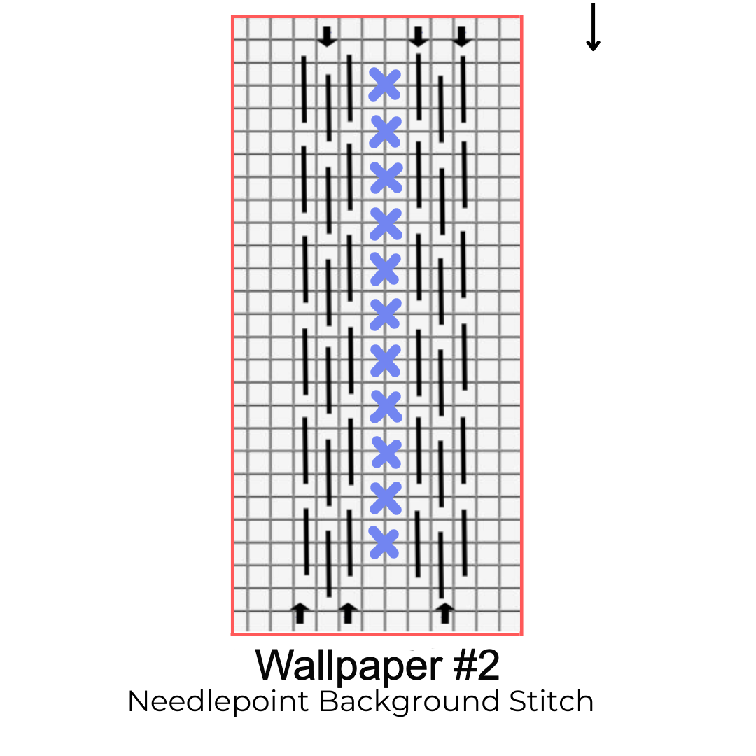 This is a fun little needlepoint background stitch that looks like wallpaper. It's the same as Wallpaper #1 but the columns are filled in with cross stitches (do these last).