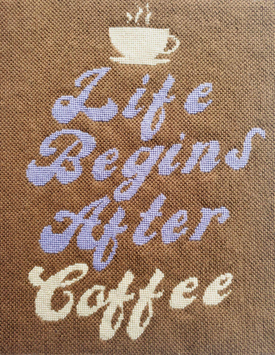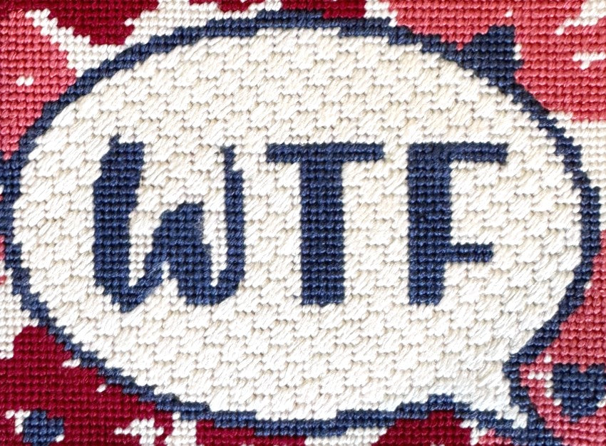 The background on this Olive You needlepoint kit is a Skip Cross Stitch.