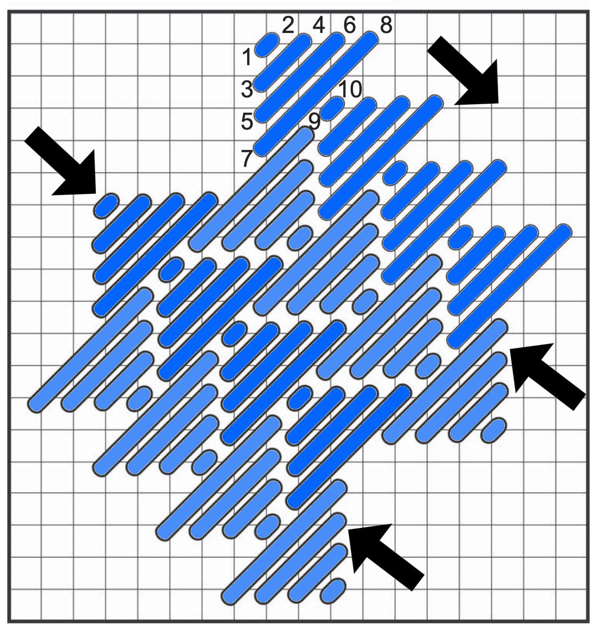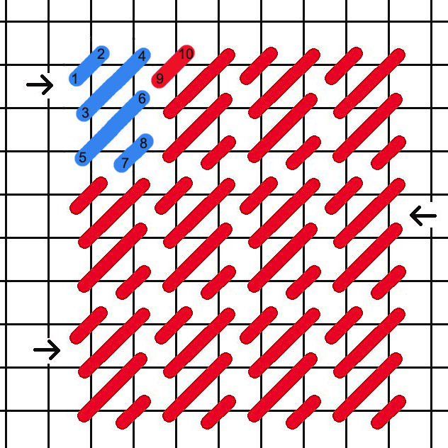 Stitch Chart for Diagonal Triple Parisian Stitch