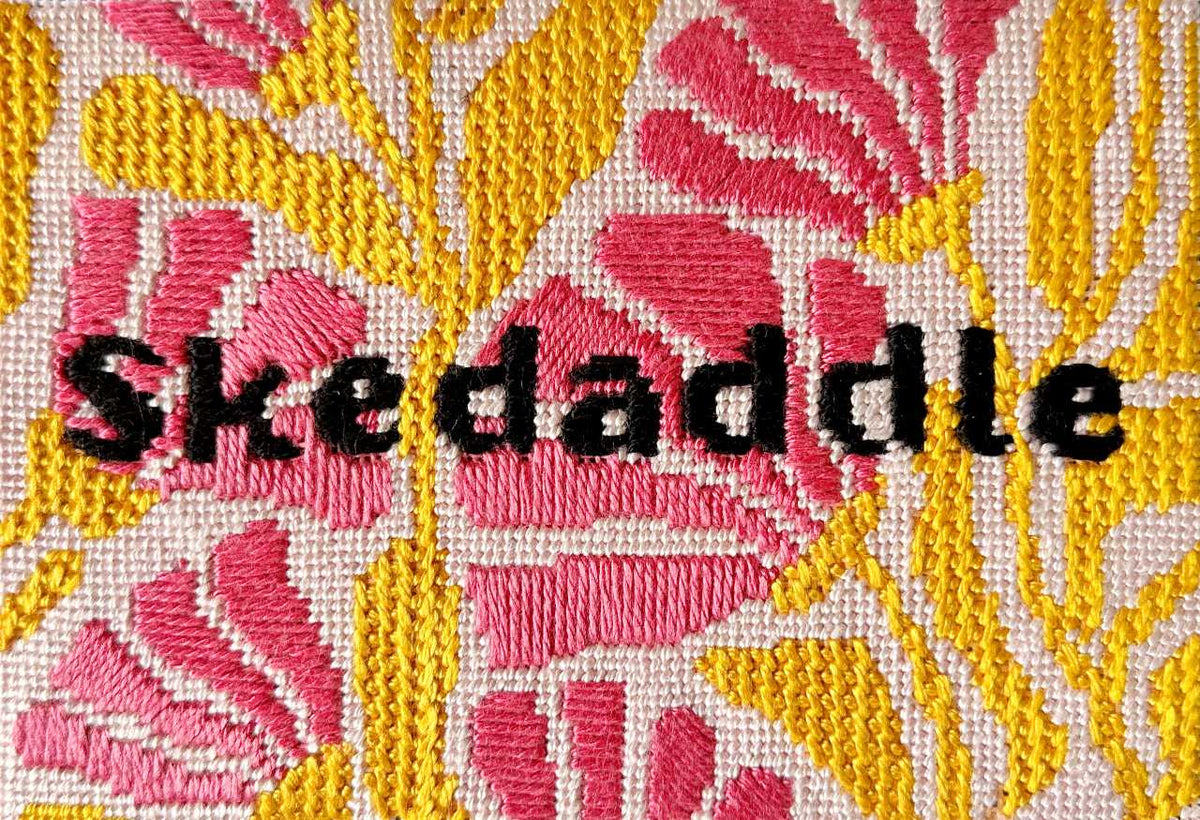 The yellow flowers on Skedaddle are in Tall Short stitch
