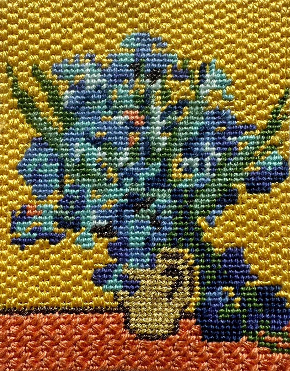 Double Brick stitch is used on the gold background of this Van Gogh Irises design. It can also lie horizontally.